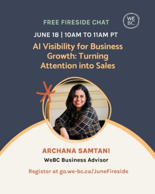 Hosted by Archana Samtani, WeBC Business Advisor, this Fireside Chat focuses on the missing piece: how to move from being visible in AI to actually generating revenue.