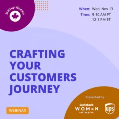 Rejoignez-nous pour découvrir la dynamique du parcours client et apprendre à aligner de manière transparente les stratégies de marketing, de vente et de service à la clientèle. Apprenez à créer des expériences client cohérentes qui stimulent la croissance de votre entreprise. Il s’agit du quatrième et dernier webinaire organisé par Startup Canada dans le cadre du programme Startup Women 2024. Ces webinaires visent à soutenir le développement des affaires des femmes entrepreneurs et à leur donner les outils et le savoir-faire nécessaires pour franchir les premières étapes de leur parcours entrepreneurial.
