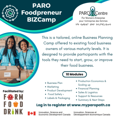 WeBC is currently partnering with PARO, an organisation supporting Women entrepreneurs in Ontario on a new cross-Canada project. As a part of this project, they will be running their successful 10-week Foodpreneur BizCamp (similar to WeBC’s Peer mentoring groups) for Foodpreneur product producers who are established on a small scale, but looking to scale up to provide to larger food retailers.
