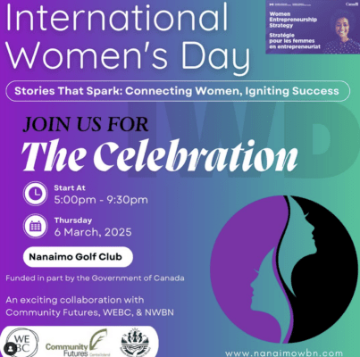 We are excited to partner with Community Futures and the Nanaimo Women’s Business Networking Group for their international Women’s Day event to connect, ignite success, and celebrate the power of local women business owners on Vancouver Island.