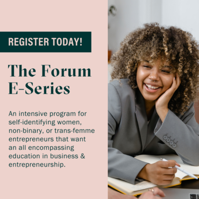 The Forum Entrepreneur Series (E-Series) presented by RBC, is back for the fall. E-Series is an intensive program for self-identifying women, non-binary, and trans-femme entrepreneurs that want an all-encompassing education in business and entrepreneurship.