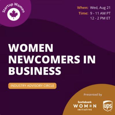 Have you immigrated to Canada within the last 5 years and looking to start your own business? Join Startup Canada for their upcoming Startup Women industry advisory circle to connect with other women newcomers in business, share resources in real-time, and learn about industry-specific ecosystem support.