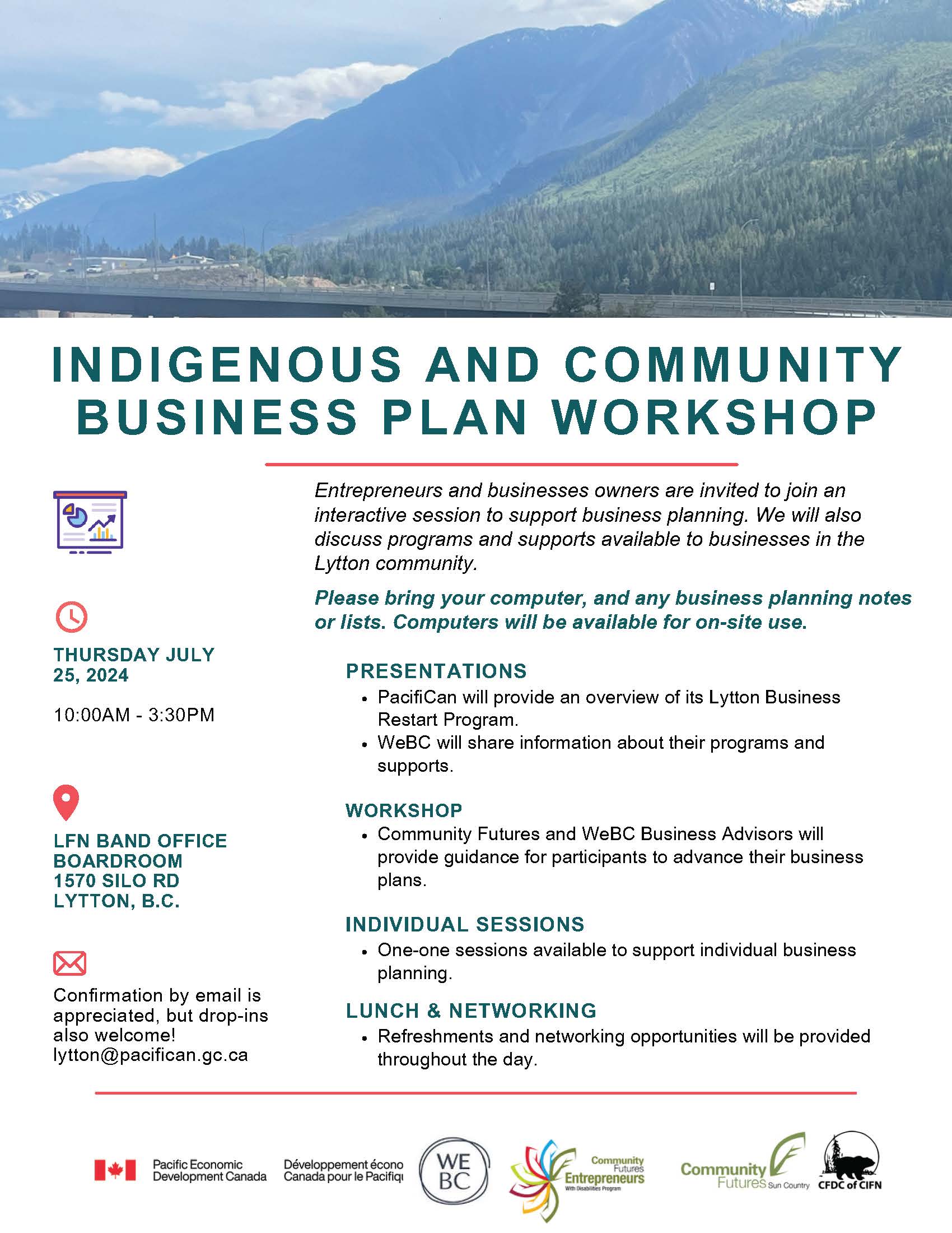 Rejoignez Kelly Masson, conseillère en affaires de WeBC, à Lytton le 25 juillet pour une session interactive visant à soutenir la planification d'entreprise et à explorer les programmes et les systèmes de soutien disponibles dans la communauté. L'événement comprendra : Présentations : Renseignez-vous sur le programme Lytton Business Restart de PacifiCan et sur les divers […]