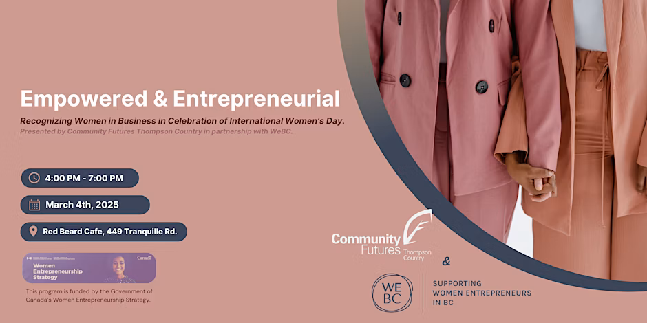 Nous sommes ravis de nous associer à la Société d'aide au développement des collectivités de Thompson Country pour l'événement de la Journée internationale de la femme à Kamloops. Joignez-vous à nous pour célébrer les femmes propriétaires d'entreprises locales, apprendre de leurs histoires et de leurs expériences, et établir des liens significatifs. Nous avons une excellente […]