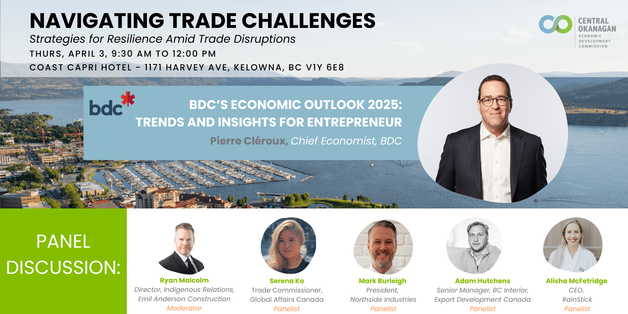 La Commission de développement économique du centre de l'Okanagan est heureuse d'organiser deux événements le 3 avril pour aider les entreprises à faire face aux défis commerciaux. Ces événements comprennent une table ronde industrielle de 8h00 à 9h30, suivie d'une présentation ouverte intitulée "Naviguer dans les défis commerciaux" avec des experts de 9h30 à 12h00. […]
