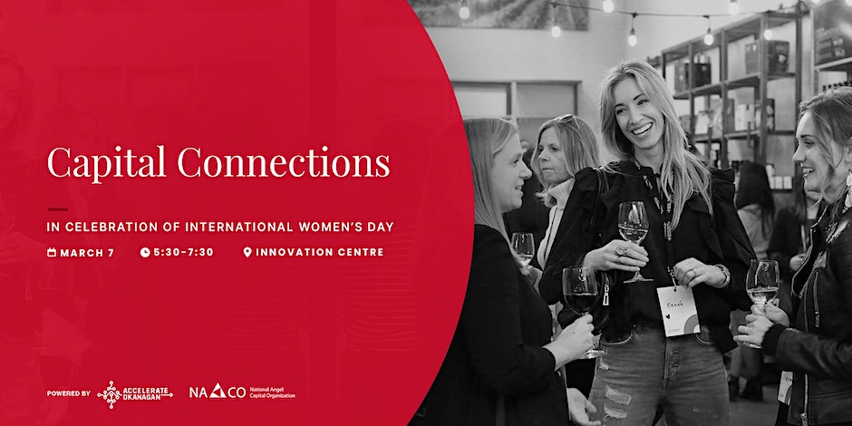 Join Accelerate Okanagan and NACO (The National Angel Capital Organization) networking and a fireside chat. Capital Connections is happening on the eve of International Women’s Day at the Kelowna Innovation Centre! Accelerate Okanagan and NACO invite you to learn and network as we celebrate women in technology, innovation, entrepreneurship, investing, and more! Attendees will have […]