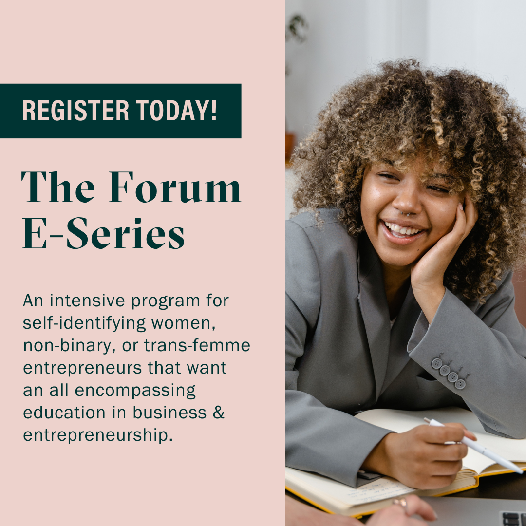 The Forum Entrepreneur Series (E-Series) presented by RBC, is back for the fall. E-Series is an intensive program for self-identifying women, non-binary, and trans-femme entrepreneurs that want an all-encompassing education in business and entrepreneurship. E-Series kicks off on November 7 and runs until December 7, 2023, with live virtual sessions running on Tuesdays and Thursdays […]