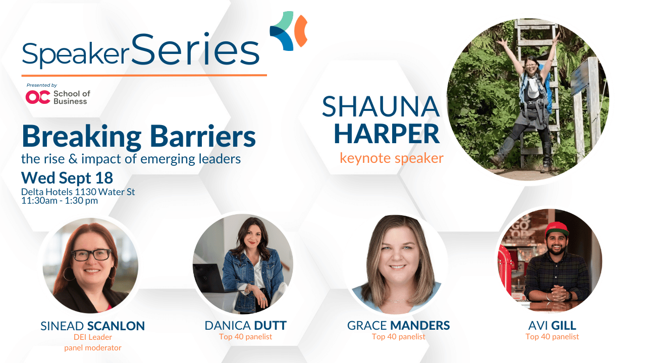 The Kelowna Chamber of Commerce September Speaker Series will be featuring our CEO, Shauna Harper, as the keynote speaker! Alongside her presentation, join us for an engaging panel discussion with this year’s Top 40 cohort Honourees, moderated by Sinéad Scanlon. This panel will explore the evolving perceptions of women and underrepresented groups in leadership roles, […]